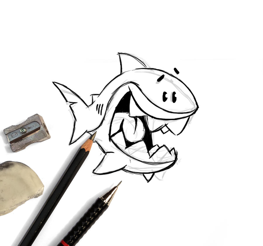 I’d been in touch with Mitu Khandaker on and off over the past couple of years regarding a couple of projects, but our schedules finally aligned on this one and what fun it was! The Tiniest Shark is her development studio and I was dying to illustrate the name as it evoked so many ideas. I couldn’t shake the idea of this little shark surrounded by HUGE nasty looking ones, while at the same time holding its own just fine. Seriously fun little project!